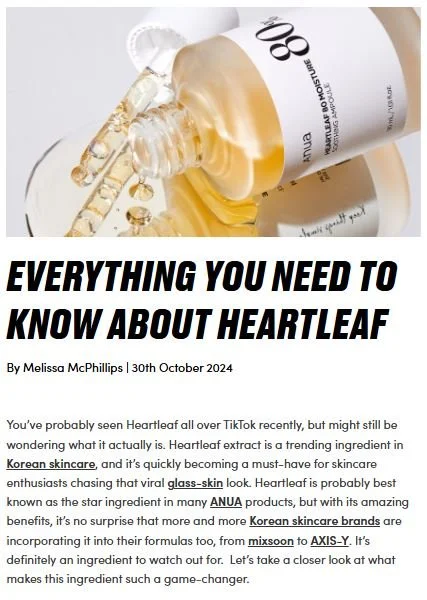 Build out K-Beauty category: This was identified as a content gap but was a growing topic and trend within the beautysphere. We needed to develop content around ingredients, how-tos, and recommendations to also feature on our product pages and position ourselves as the go-to brand for K-Beauty.