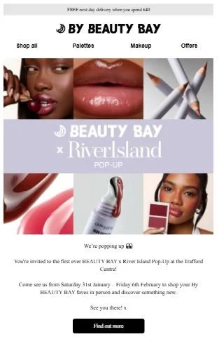 Subject line: BEAUTY BAY X River Island Pop-Up ✨