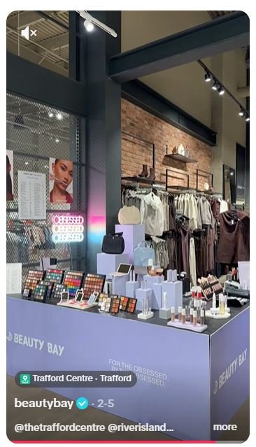 The River Island x BEAUTY BAY Pop-Up was the first collaboration between the two brands. Plus, BEAUTY BAY’s first ever pop-up event. It took place at the River Island Trafford Centre store from Saturday 31st January until Friday 6th February. BEAUTY BAY’s own brand cosmetics range, By BEAUTY BAY, was on offer at full price. Customers were able to buy eyeshadow palettes, lip stains and bronzing drops amongst other bestsellers. We wanted to increase brand awareness of the By BEAUTY BAY range and acquire new customers by reaching a new audience inside a high-footfall flagship fashion store that aligned with the aesthetic and values of the brand.